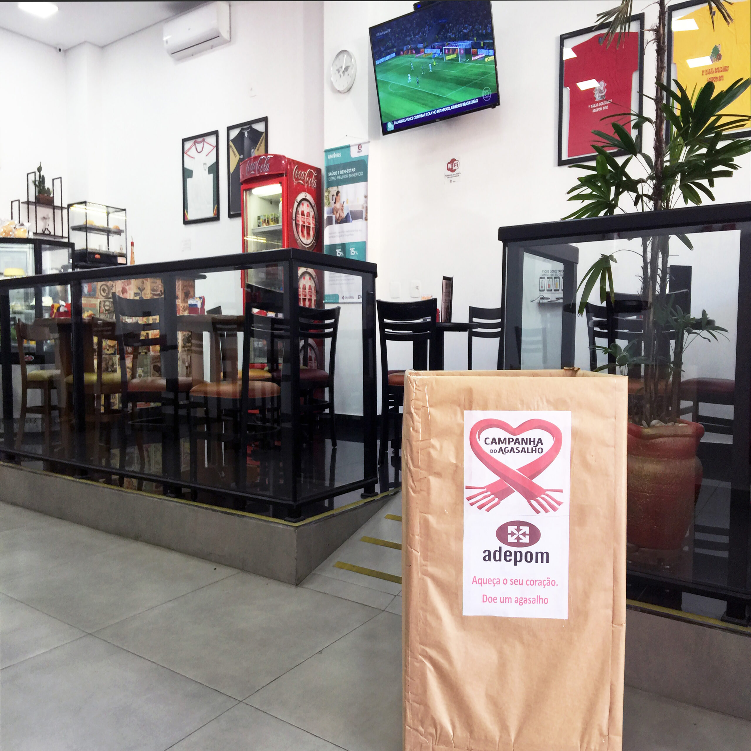 Ao dar uma paradinha na Cafeteria ADEPOM para aquecer o estômago, você também pode aproveitar para participar da nossa Campanha do Agasalho, aquecendo o coração da população carente ao fazer doações de roupas, calçados e cobertores que serão repassados às instituições de caridade que contam com o nosso apoio ao longo de todo ano. Vem!